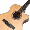 Шестиструнная акустическая гитара. Компактная конструкция типа Folk с вырезом. Топ из массива ели, нижняя дека и обечайка из ореха. Гриф из красного дерева, палисандровые накладка и бридж, костяной верхний порожек. Длина мензуры 650 мм, 20 ладов из нержавеющей стали с уникальной инкрустацией, литые колки.Bear Music GA-02F-Pro - это шестиструнная акустическая гитара, использующая компактный и легкий корпус формы Folk. Конструкция инструмента позволяет легко путешествовать вместе с инструментом, брать его в поездки и на отдых. Данная версия GA-02F-Pro предлагает высококачественные материалы, превосходный внешний вид и богатое насыщенное звучание, за счет чего может эффективно использоваться не только начинающими музыкантами, но и профессионалами в студии или на сцене.